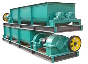 雙軸攪拌機(jī)是針對(duì)散狀物料的混合攪拌,采用螺旋推進(jìn)的原理,將進(jìn)入攪拌機(jī)的混合物攪拌均勻后送到下道工序。具有攪拌能力強(qiáng),給料連續(xù)均勻的特點(diǎn),攪拌葉片為可自由拆裝式,材質(zhì)為耐磨合金鋼。本機(jī)操作簡(jiǎn)單,維修方便,特別適合型煤、耐火材料等松散物料的混合攪拌。